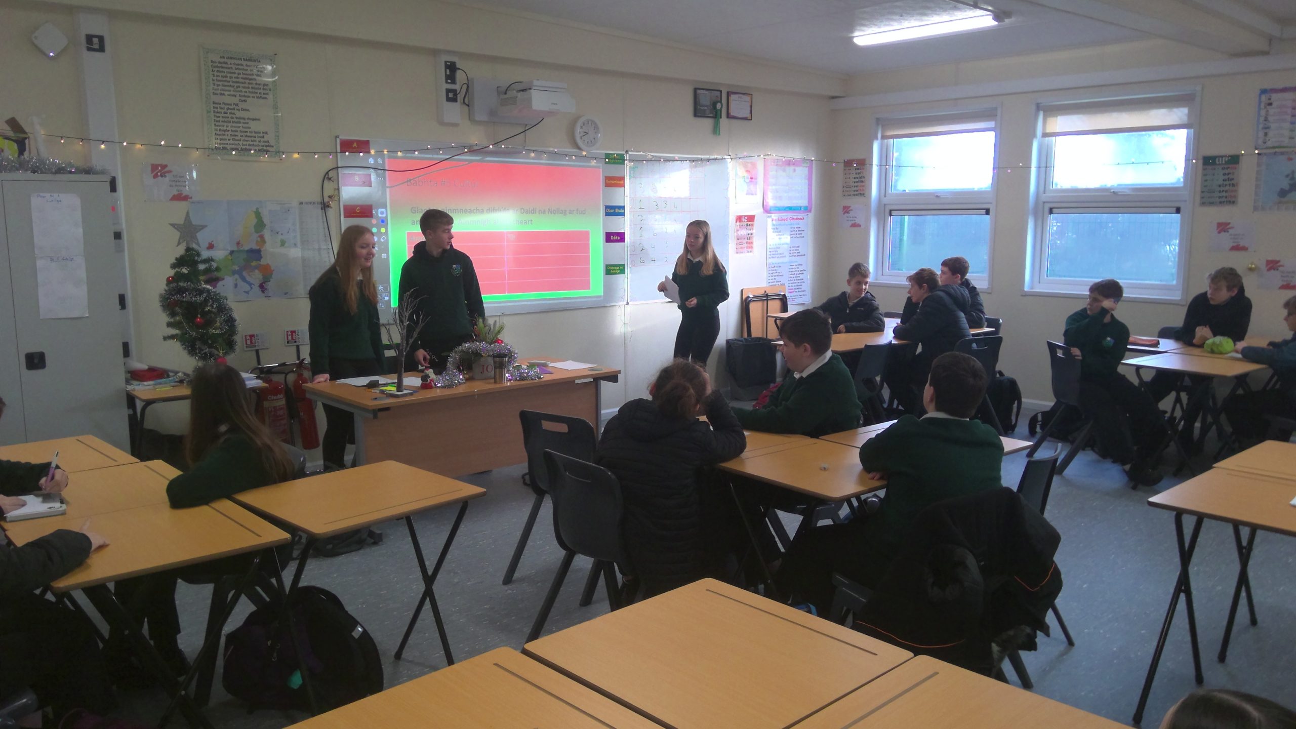 Nach deas iad!!! Bhí Lá Geansaí na Nollag agus scannán na Nollag againn ar scoil inniu mar pháirt de shéasúr an chairdis agus an dea-thola.