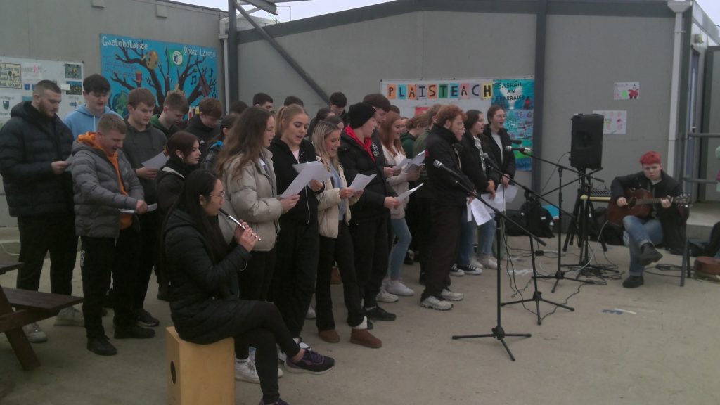 Ghlac scoláirí agus múinteoirí páirt i “Seas an Fód 2023”. Seachtain Fheasachta a bhí ann ar imeascadh an phobal LGBTQIA+ agus conas dul i ngleic le cúrsaí bulaíochta agus leithcheal a fhulaingíonn siad fós. Tá ardmholadh tuillte ag na scoláirí as an obair dhícheallach agus an meon dearfach a léirigh siad i rith na seachtaine!
