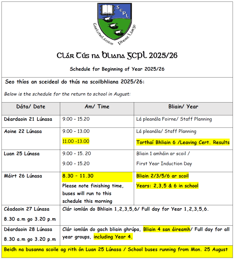 Guíonn an scoil gach rath ar na scoláirí seo. Go n-éirí an bóthar leo i gcónaí.